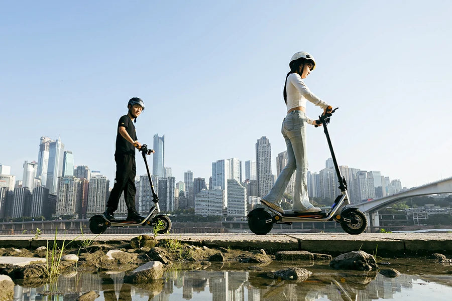800W motor handles 20° slopes, paired with 10-inch vacuum tires for grip on asphalt, stone, and gravel. Rubber-filled shock absorption filters bumps, and a 48V/13Ah battery powers daily commutes and weekend trips.
