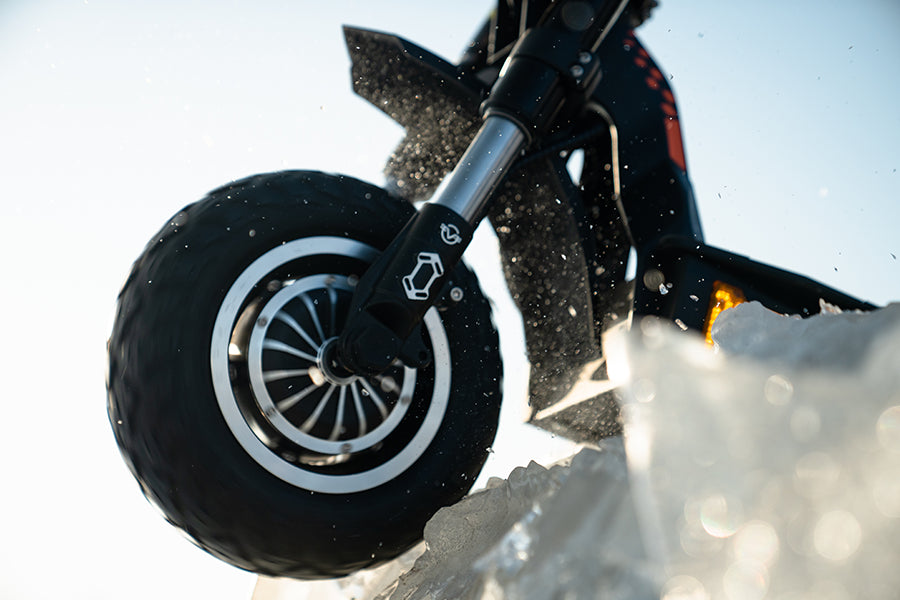 Dual motors roar with brute power, ultra-long range fuels non-stop adventure. Hydraulic shock absorption, four-piston oil brakes, and ultra-wide off-road tires. Smart display, cool ambient lights, and quick dual charging. Foldable, detachable battery, and practical hanging bag—power meets convenience.