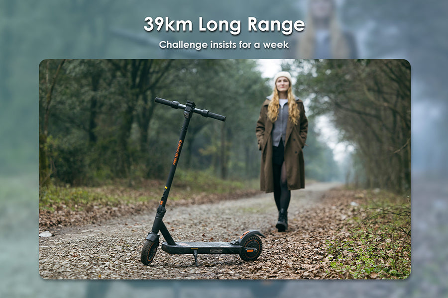 Boasting a 36V10.4Ah high-performance lithium battery, this scooter delivers up to 39km of range, covering daily needs and banishing mileage anxiety for good.